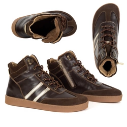 Damskie botki barefoot zimowe skórzane ocieplane futerkiem Olivier JASPER brązowe