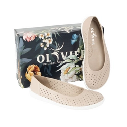 Baleriny ażurowe barefoot damskie Olivier 1284 – skórzane buty z klamerką do codziennych i eleganckich stylizacji beżowe