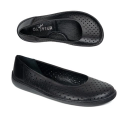 Baleriny barefoot damskie Olivier 1286 – skórzane buty z klamerką do codziennych i eleganckich stylizacji czarne