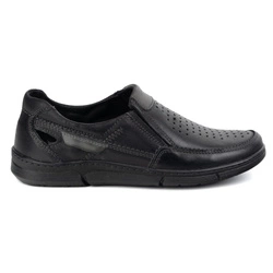 Boty Pánské kožené mokasíny na léto 602 black