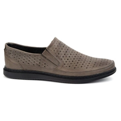 Pánská prolamovaná kožená obuv 2107L na léto šedá