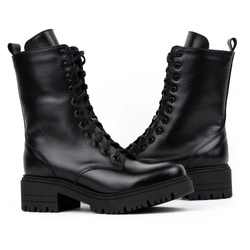 Botki damskie wysokie ocieplane skórzane sznurowe wysokie zimowe 0709W