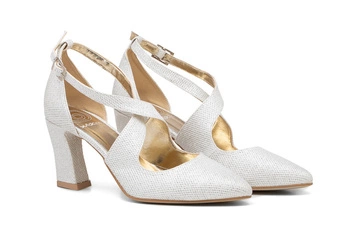 Nízké svatební boty na jehlovém podpatku s pásky stříbrné třpytky ALBA