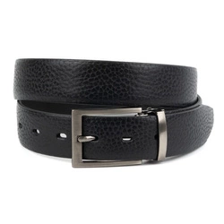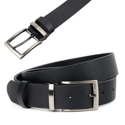Pánský kožený pásek ke kalhotám s klasickou vyraženou přezkou černé barvy T8.35