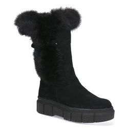 Dámské velurové kozačky s králíkem Pollonus Black 5-1434-004