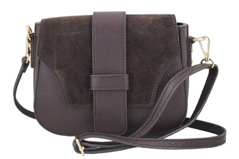 Kabelka do ruky s klopou ze semiše - Hnědá tmavá