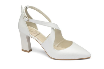 Svatební kožené nízké lodičky s ozdobnými křížovými pásky bílé BUTDAM
