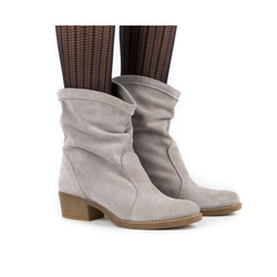 Ažurové semišové boty na podpatku Lena tmavě béžová