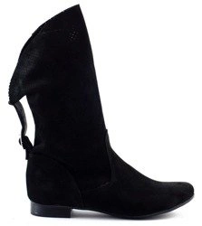 Ažurové semišové boty na podpatku Lena námořnická modř