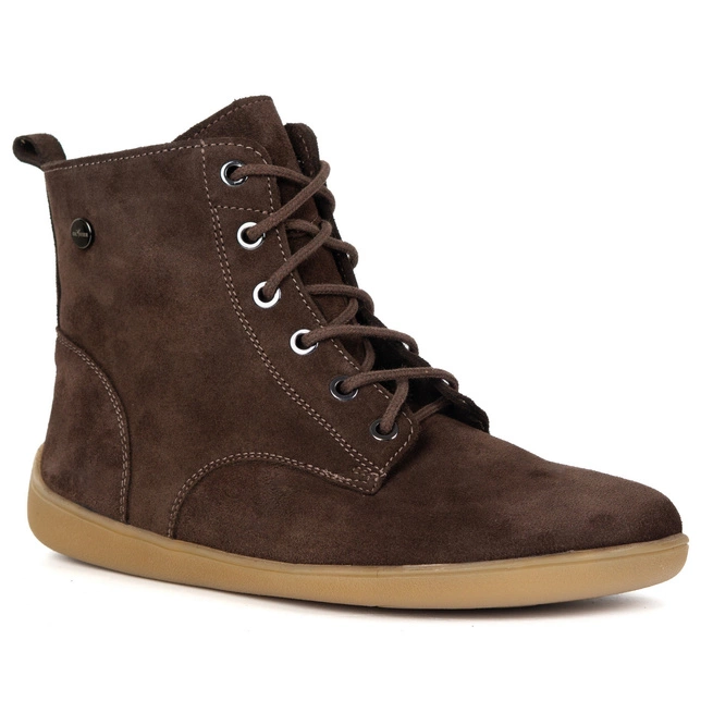 BAREFOOT dámské kožené boty 1795POL - zateplené, šněrovací se zipem hnědé