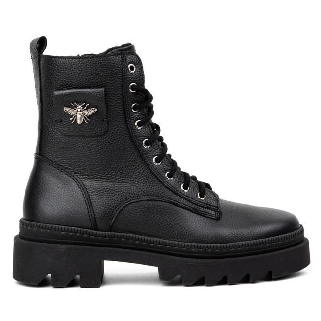 Botki zimowe ocieplane skórzane damskie 1186 czarne