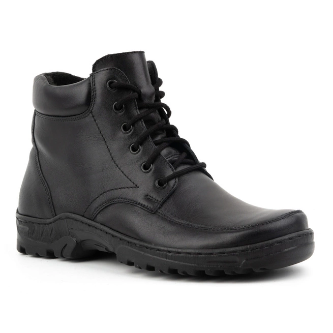 Buty męskie ocieplane trzewiki za kostkę skórzane POLSKIE 0151W czarne
