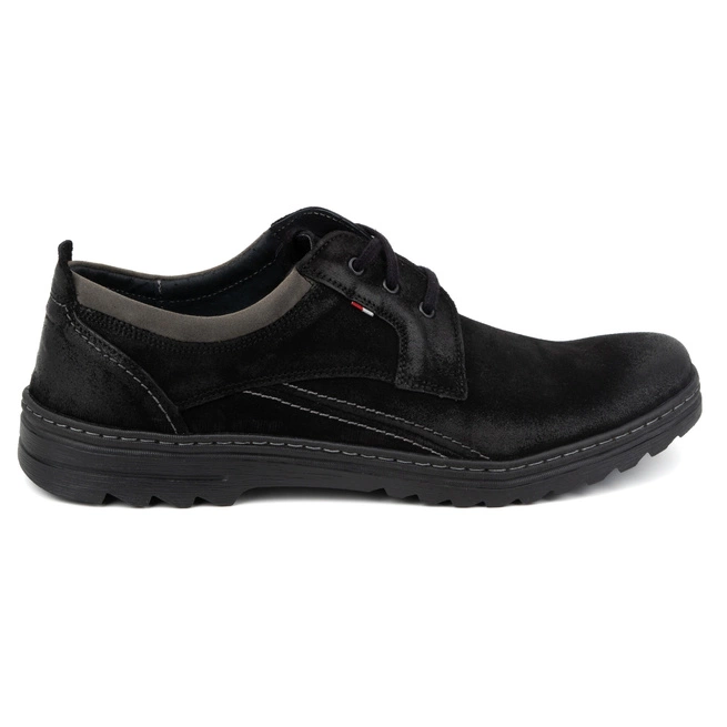 Buty męskie skórzane casual sznurowane zamszowe 309GT czarne