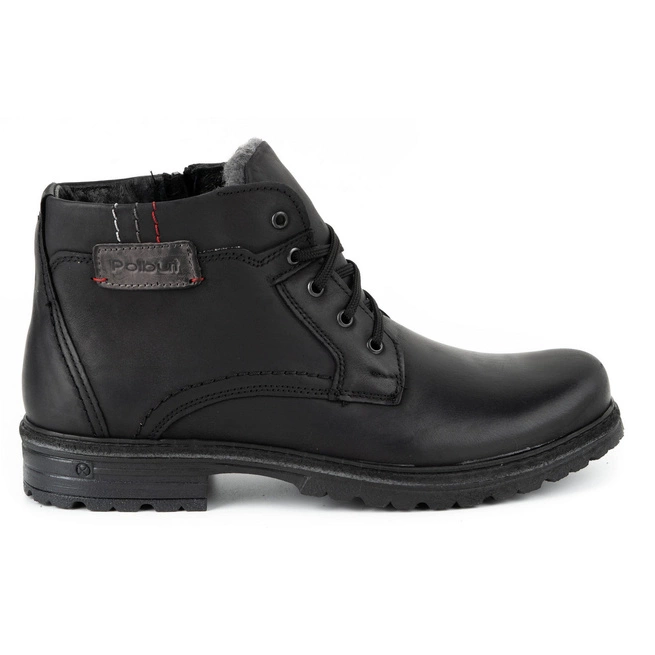 Buty męskie trzewiki zimowe skóra J35S czarne z szarym