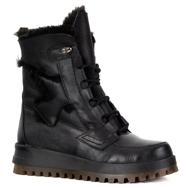 Černé sněhule1775 POL kůže zateplené přírodní vlnou