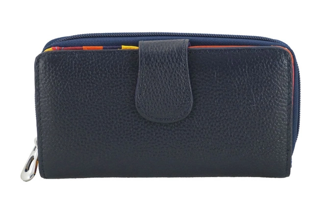 Vnitřek peněženky: barevná dámská kožená peněženka je rozdělena do dvou samostatných zón. Část na zip obsahuje dvě přihrádky a kapsu na mince na zip. Druhá část se zapínáním na patentku obsahuje sedmnáct přihrádek na platební nebo věrnostní karty, dvě přihrádky na bankovky a tři přihrádky / úložné prostory, velký prostor na fotografii blízkých osob a prostor na fotodokument, například občanský průkaz. Každá peněženka má uvnitř kombinaci různých sad barevných přihrádek, díky nimž tento model vyniká.