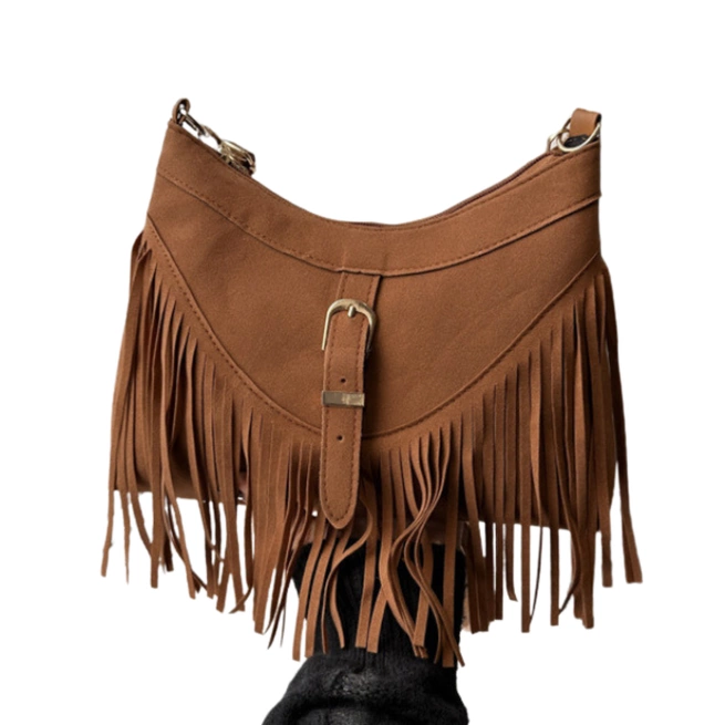 Kabelka, která upoutá pozornost a dodá osobitý vzhled každému oblečení. Vyrobeno z měkké textilie s texturou a zdobeno nápadnými střapci - ideální pro ženy, které mají rády módu s nádechem ležérnosti a uměleckého vkusu. Skvěle se hodí k podzimním kabátům, džínovým bundám nebo vzdušným šatům.