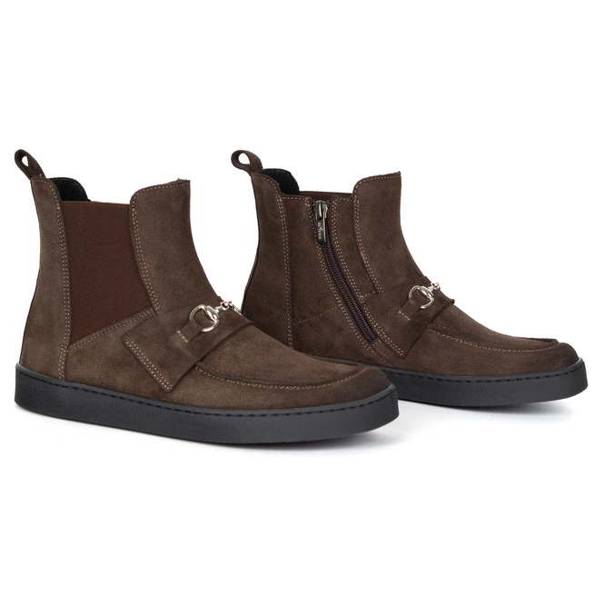 Boty mají na bocích elastické vložky a zip , což usnadňuje nasazování. Jemný kovový detail na přední straně dodává botám charakter a eleganci, přičemž zachovává přirozenou jednoduchost stylu barefoot. Lehká podrážka s plochým profilem umožňuje noze volný pohyb, což ocení milovníci přirozené chůze.