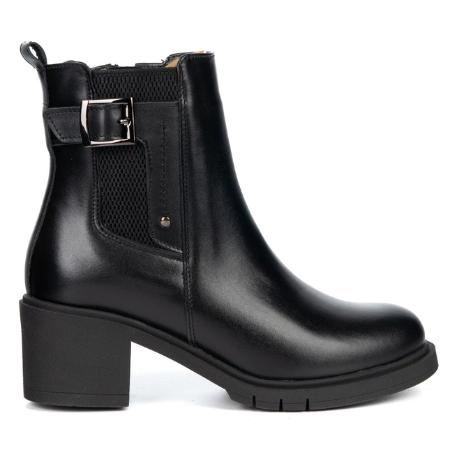 Dámské kožené boty 405BB - lícová kůže, stabilní podpatek, hřejivé pro chladnější období roku
