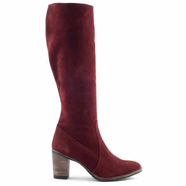 Dámské kožené kozačky Olivier na vysokém podpatku vínové barvy
