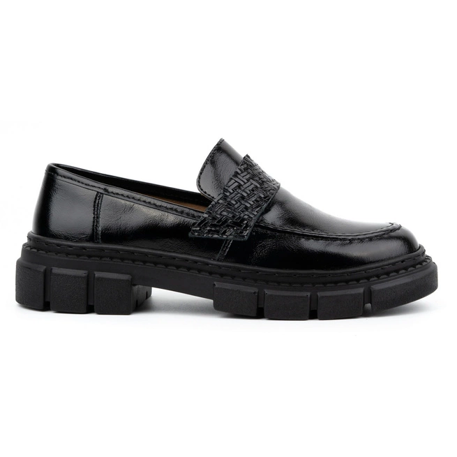 Dámské kožené nazouvací polobotky 0706 černé s tlustou podrážkou