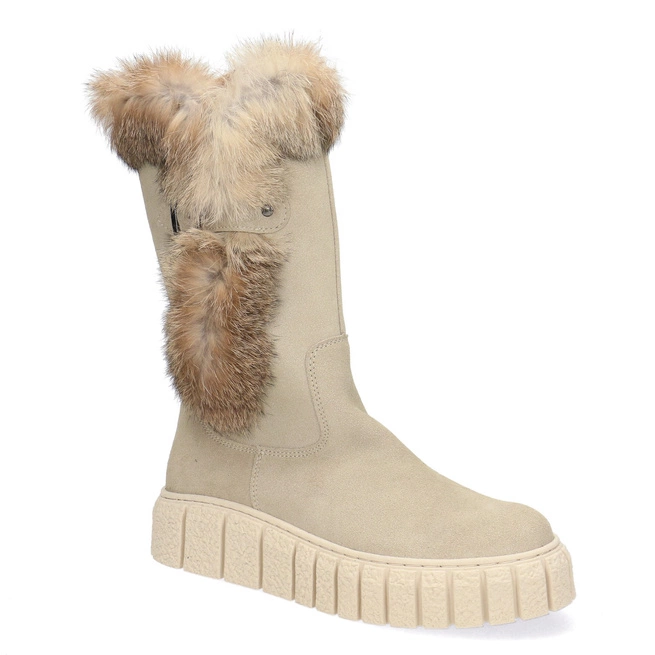 Dámské kožené velurové boty Pollonus ecru galaxy 5-1569-012