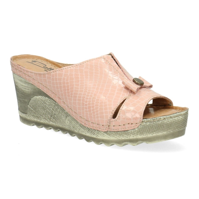 Dámské kožené žabky na platformách s mašlí Pollonus pink 5-1074-022