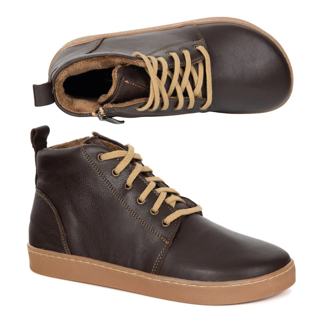 Dámské kožené zimní boty barefoot Z-B04 hnědé