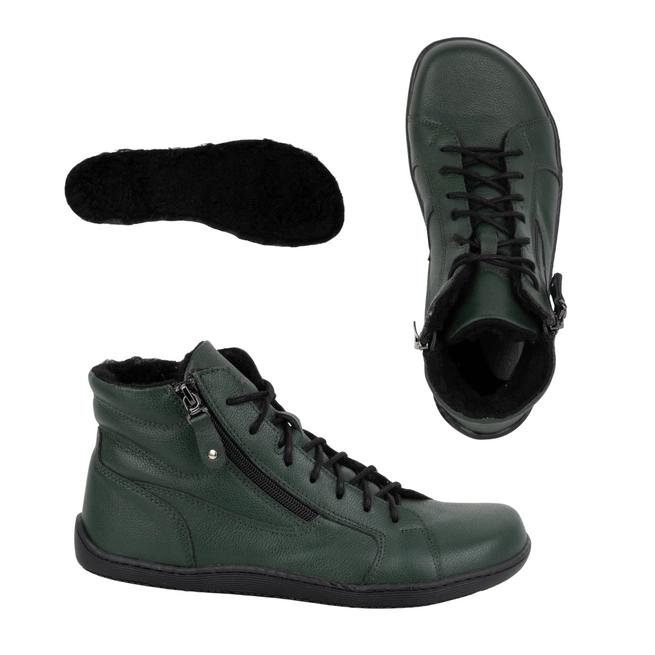 Dámské minimalistické kožené zimní boty barefoot 1261 zelené