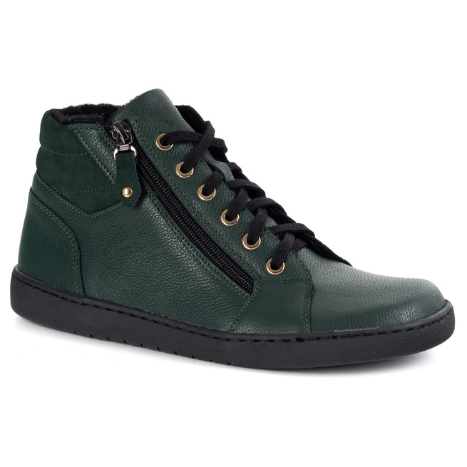 Dámská minimalistická barefoot zimní kožená obuv - model 1293 je polská kožená obuv určená pro přirozenou chůzi a volnost pohybu nohou. Jsou vyrobeny z přírodní kůže a kombinují řemeslnou preciznost s funkčností, kterou nositelé barefoot obuvi očekávají. Anatomický design umožňuje noze pracovat způsobem blízkým přirozenému a podporuje její správnou biomechaniku. Díky použitým vysoce kvalitním materiálům je obuv vhodná pro každodenní nošení i v zimním období. Zapínání na zip a šněrování pro snadné oblékání a přizpůsobení střihu.