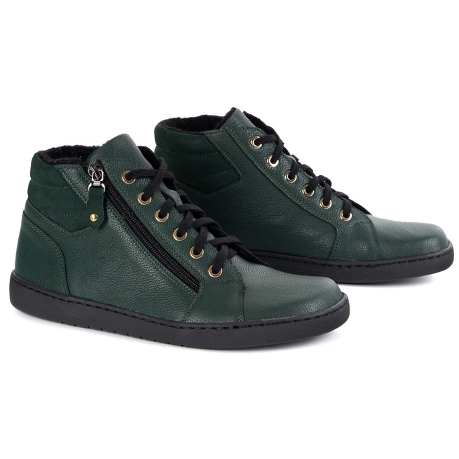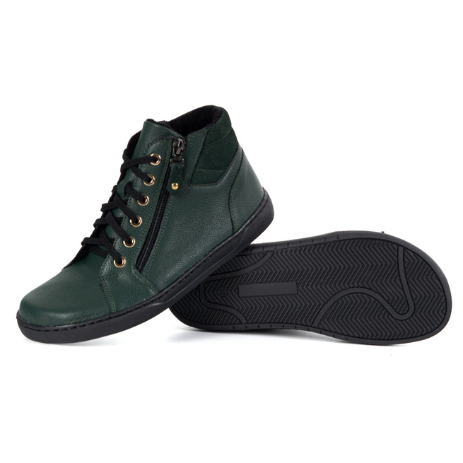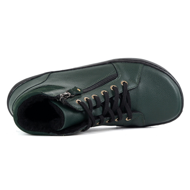 Dámské minimalistické kožené zimní boty barefoot 1293 green
