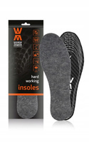 Komfortowe wkładki zostały wykonane z wysokogatunkowej włókniny poliestrowej oraz pianki lateksowej z węglem aktywnym pochłaniającym nieprzyjemne zapachy. Chronią stopy przed zmarznięciem, nawet podczas wykonywania pracy lub innej aktywności w niskiej temperaturze otoczenia (na zewnątrz lub w pomieszczeniach zamkniętych). Izolują od twardego i zimnego podłoża, a dolna warstwa w formie pianki lateksowej z urzeźbieniem, zabezpiecza przed przesuwaniem się wkładki w obuwiu. Zalecane do stosowania w obuwiu do użytku w pracy - roboczym, zawodowym, ochronnym, bezpiecznym, z wyłączeniem obuwia o właściwościach antyelektrostatycznych.
