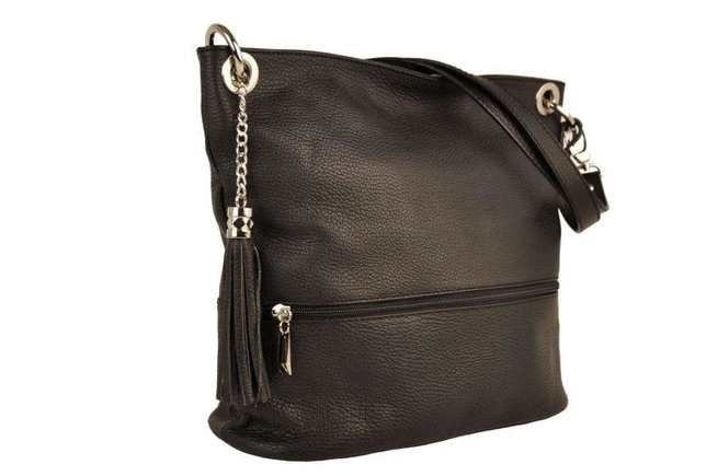 Italské kožené kabelky se vyznačují ozdobným koženým střapcem na stříbrném řetízku.