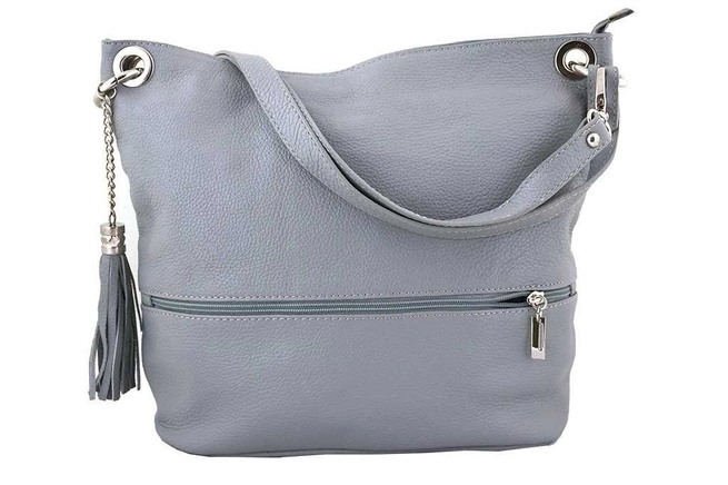 Italské kožené kabelky se vyznačují ozdobným koženým střapcem na stříbrném řetízku.