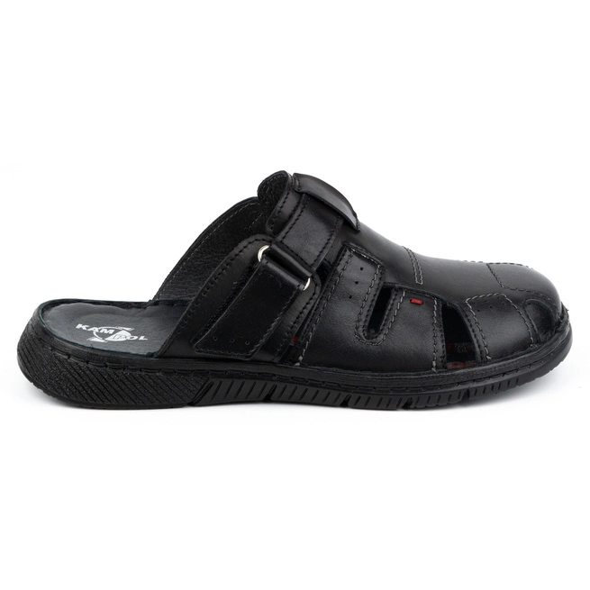 Klapki męskie skórzane KAMPOL Polskie tęgie 221KAM czarne