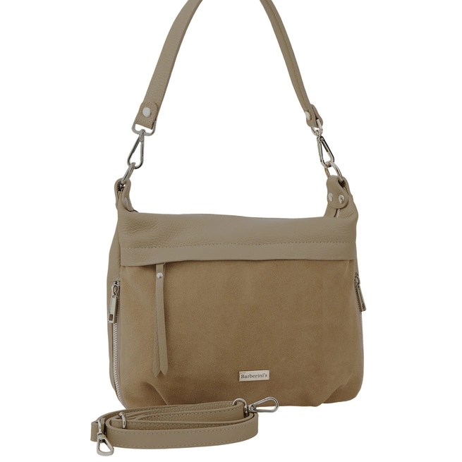 Kožená kabelka se semišovými akcenty v béžové barvě - elegance a funkčnost v jednom. Objevte dokonalou kombinaci stylu, pohodlí a praktičnosti. Kožená kabelka se semišovým akcentem je model vytvořený pro ženy, které ocení klasiku v moderním vydání. Je vyrobena z vysoce kvalitní přírodní kůže, jejíž přední strana je z měkkého, na dotek příjemného semiše, a působí elegantně a nadčasově. Je ideální do práce, na schůzky i na každodenní nošení - praktický a zároveň elegantní. Elegantní a zároveň praktická kožená kabelka se semišovými akcenty je ideální pro každou situaci - do práce, na nákupy, na setkání s přáteli nebo na víkendový výlet. Skvěle se hodí jak ke klasickému kancelářskému stylu, tak k uvolněným ležérním soupravám.