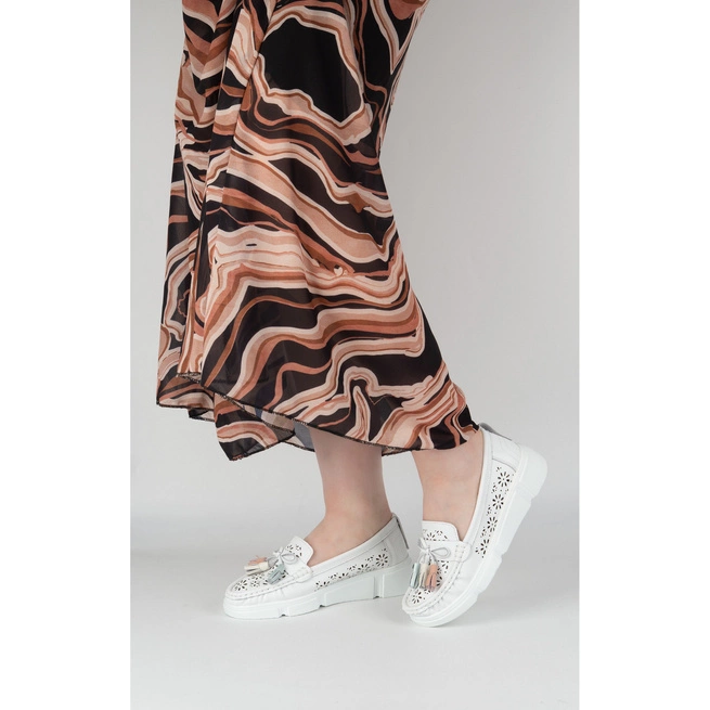 Tyto stránky kožené mokasíny je kombinací styl a lehkost, ideální pro teplejší dny. Jejich prolamovaný svršek nejenže dodává jemný nádech, ale také zajišťuje prodyšnost, takže jsou ideální volbou pro každodenní nošení.