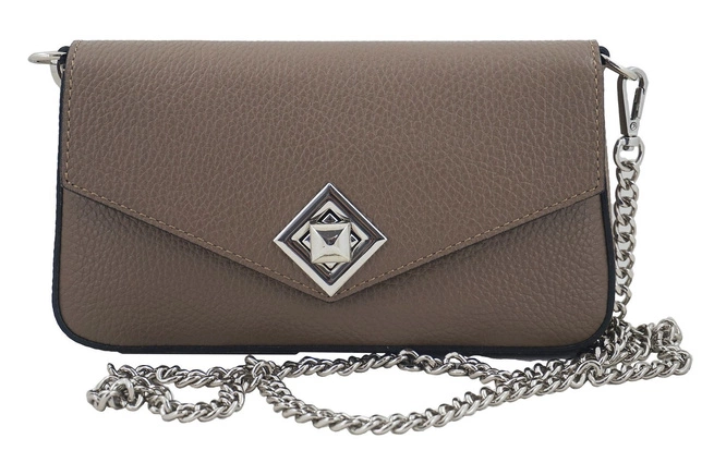 Malé kožené společenské kabelky mají stříbrné kování, nenastavitelný řetízek (délka 120 cm, výška 60 cm) a zapínají se ozdobnou stříbrnou sponou, která odlišuje tento model poštovní kabelky, která bude dokonalým doplňkem koženého zboží pro každý den i zvláštní příležitosti.