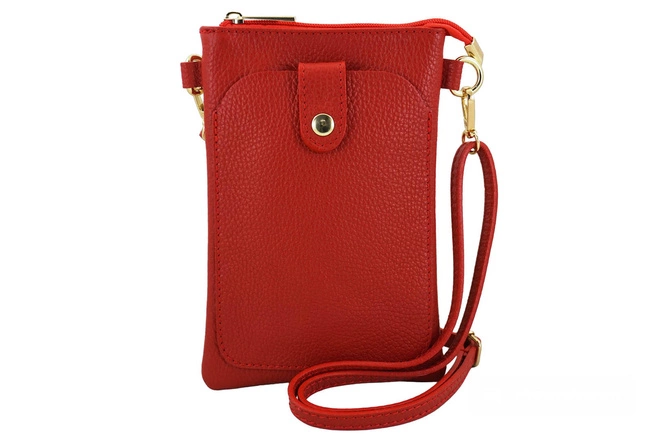 Mini taška / pouzdro z kůže je módním doplňkem pro každý den i zvláštní příležitosti - neomezuje v pohybu, má nastavitelný popruh a pojme všechny nezbytnosti - telefon, malou peněženku, drobnou kosmetiku a klíče.
