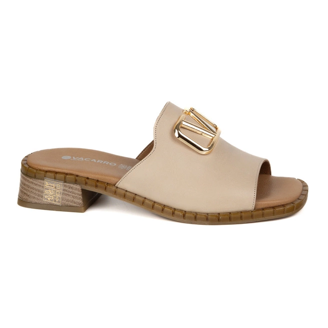 Módní dámské kožené žabky béžové 137 VAC zlaté detaily