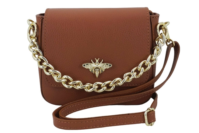 Módní zapínání, zlatý řetízek a kvalitní přírodní kůže jsou charakteristickými znaky tohoto modelu kabelky, který bude dokonalým doplňkem vašeho outfitu na setkání s přáteli.