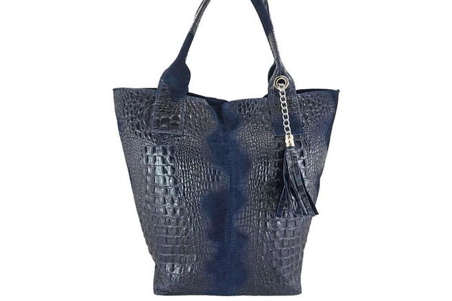 Módní kožená taška - CROCO byla vyrobena v Itálii, z přírodní semišové kůže. Nabídka internetového obchodu - kabelka, která doplní ležérní styling. Měkká semišová kůže, pohodlná délka rukojeti, módní střapec a zvířecí motiv - to vše zaručuje, že váš styl bude jedinečný. Módní kožená nákupní taška formátu A4 s pohodlnou délkou ucha se skvěle hodí k běžnému pracovnímu i univerzitnímu oblečení.