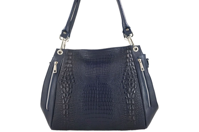 Módní velká kožená taška přes rameno - námořnická modř
