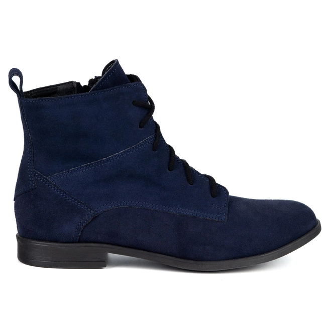Olivier Claire - klasické dámské šněrovací boty na zip, přírodní kůže, tmavě modrá