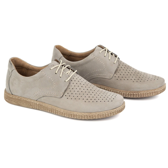 Model 933/2 značky KOMODO je dokonalou kombinací elegantní jednoduchost a funkčnost, určené pro muže, kteří hledají univerzální obuv pro každodenní nošení. Horní část z přírodní kůže jemně se přizpůsobuje tvaru nohy, poskytuje volnost pohybu a optimální prodyšnost. Ručně šité detaily podtrhují řemeslné zpracování, zatímco klasické šněrování dodává botám nadčasový nádech.