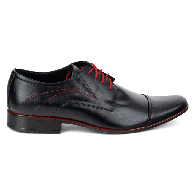 Pánská společenská obuv 238lu kůže s červeným prošíváním a tkaničkami