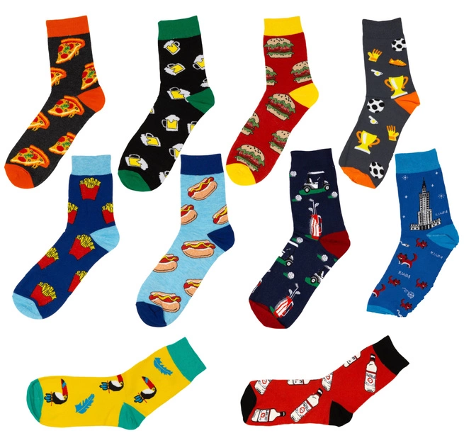 Módní, barevné a zábavné bavlněné ponožky s barevnými vzory. Sada 10 párů.