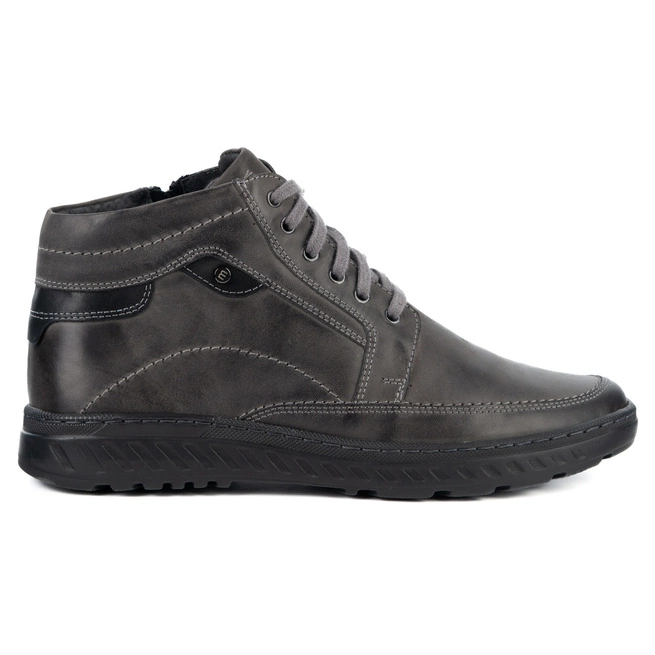 Pánské zateplené boty 964 K-40 šedé kožené vázané na zip