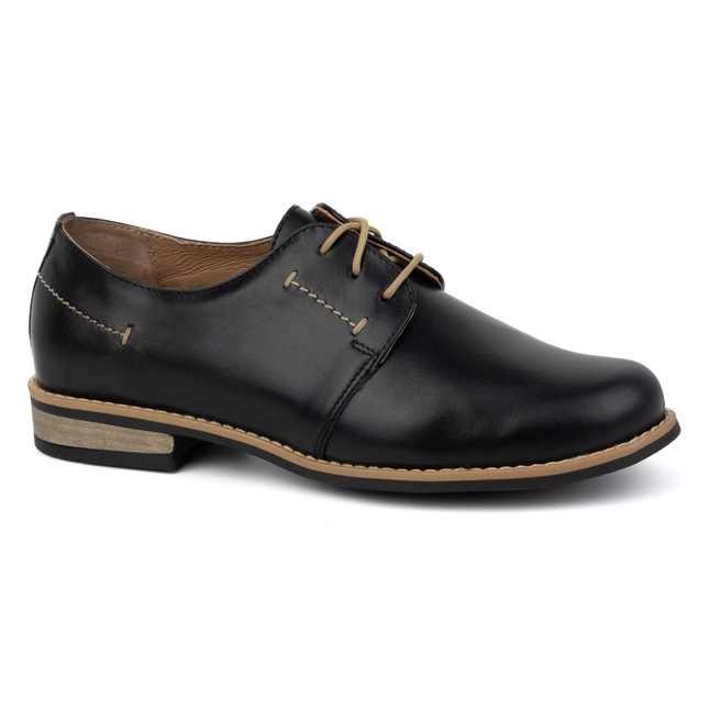 Półbuty damskie skórzane sznurowane 0393W czarne