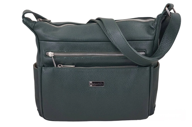 Každodenní a praktická taška přes rameno v tmavě zelené barvě je vyroben z přírodní kůže. Hledáte kabelku, která by se hodila k vašemu každodennímu oblečení a podtrhla váš ležérní styl? Představujeme novinku v našem obchodě - každodenní a praktickou tašku přes rameno se spoustou prostorných kapes - ideální taška pro každý den. Všechny základní věci budou na místě. Tašky z nejnovější kolekce jsou určeny pro dokumenty, poznámky, organizér nebo zápisník. Každodenní a praktická taška přes rameno pro dámy, které oceňují vkusné doplňky svého každodenního šatníku, které dbají na kvalitu a estetiku výrobku z přírodní kůže. Doporučujeme vám prohlédnout si naši podrobnou nabídku klasických dámských kožených kabelek. Nabízíme také velký výběr peněženek z lakované kůže nebo s barevným vnitřkem, zabalených v ozdobné krabičce.